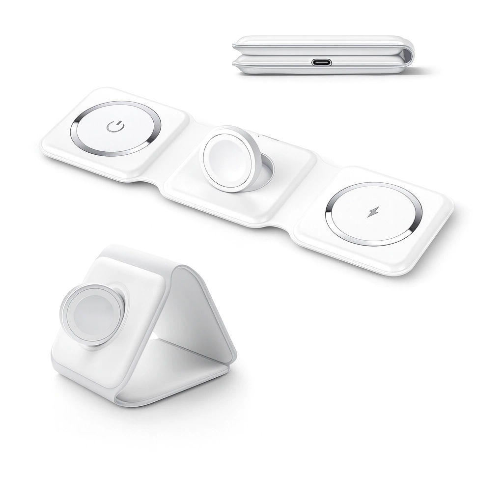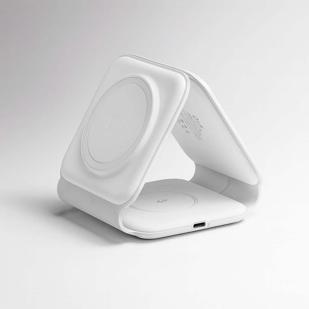 🔹 Diseño compacto y elegante, perfecto para cualquier espacio. 🔹 Tecnología de carga magnética que asegura una alineación precisa. 🔹 Compatible con todos los modelos de iPhone con MagSafe.